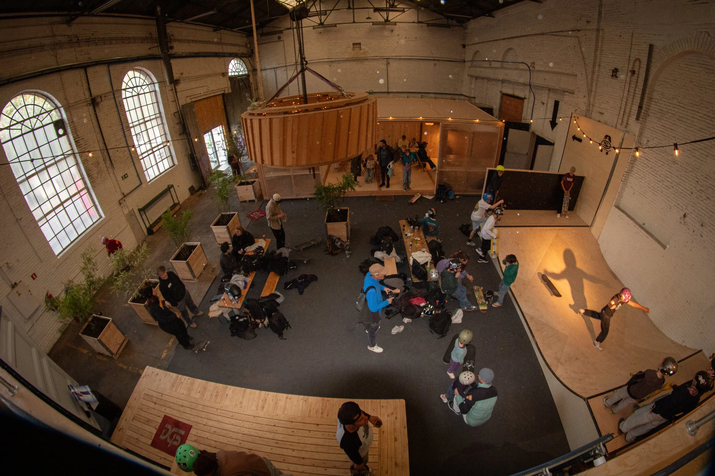 Ons skatecafé is een warme ontmoetingsplek, waar skaters, ouders en vrienden samenkomen om te ontspannen en te genieten van de unieke industriële sfeer.